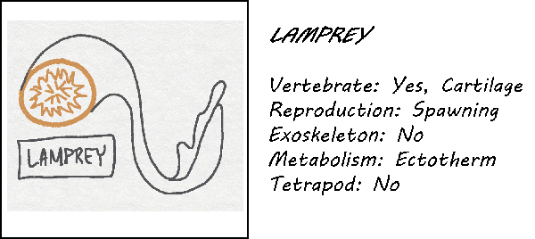 7a. Animal has a cartilage skeleton ...................................................................... Agnathan