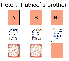 Patrice has blood type A- whereas Peter has blood type AB-. Because Peter has the B